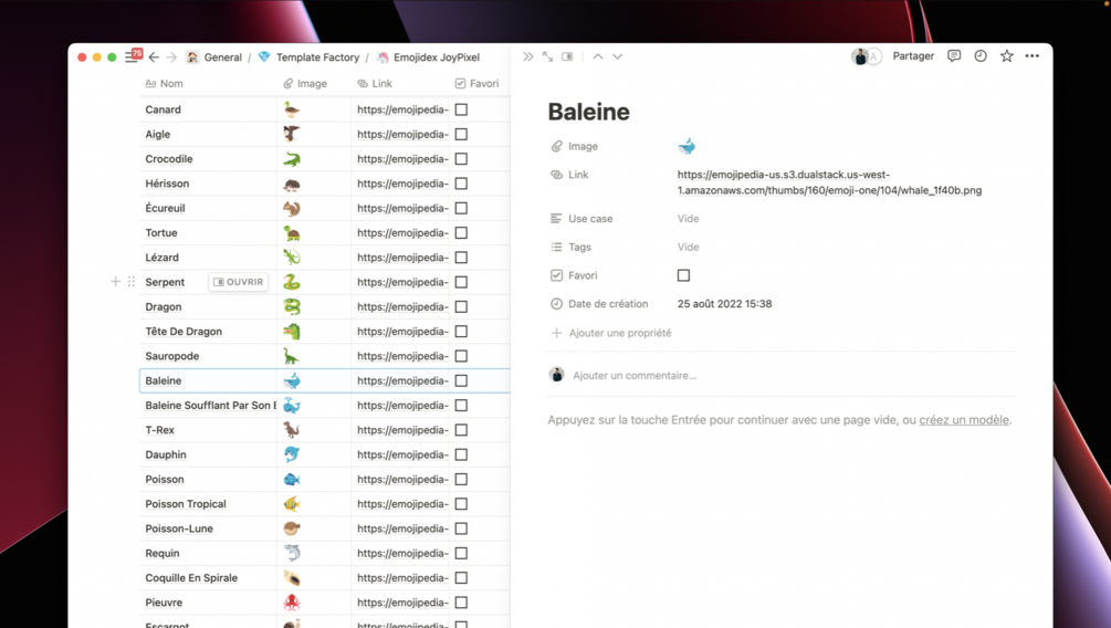 Du coup, pour ne pas devoir aller chercher ces emojis sur internet chaque fois qu'on veut les utiliser, on les a rassemblés dans une base de données !