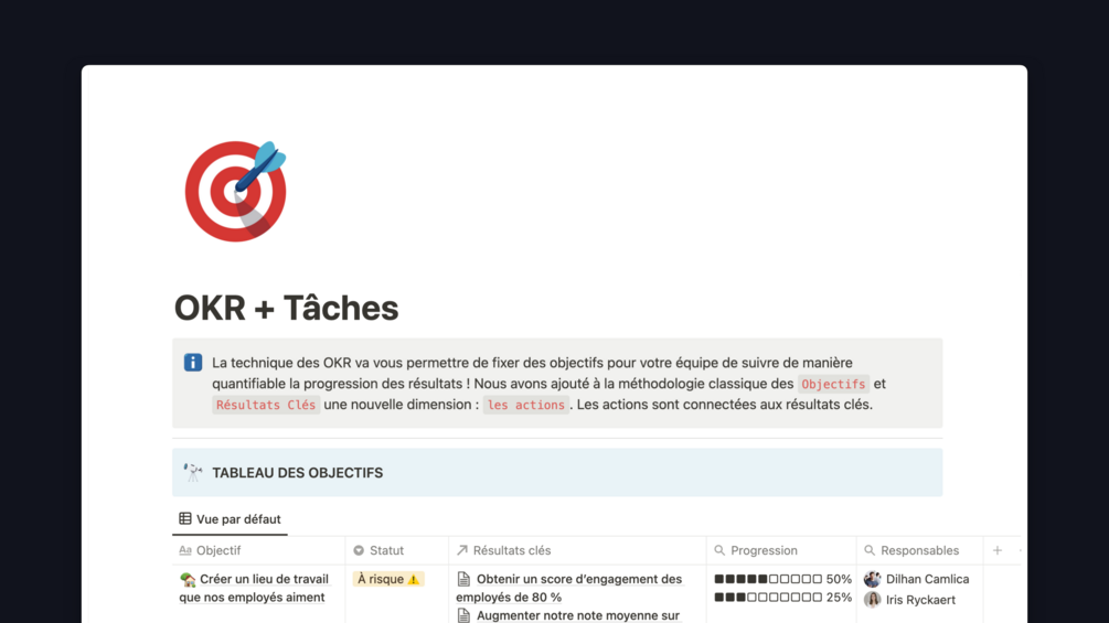 Adoptez la fameuse méthode OKR dans votre Notion.