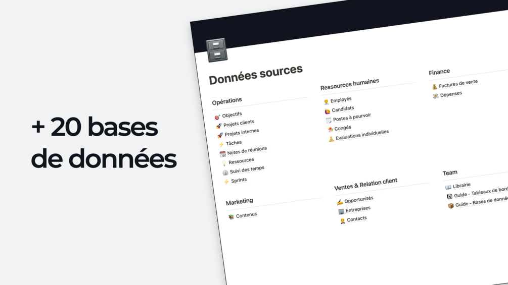 Gagnez des jours de paramétrage et adoptez la bonne méthodologie pour construire l'espace Notion de votre entreprise.